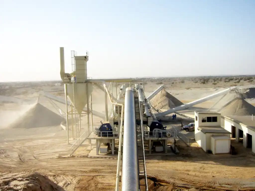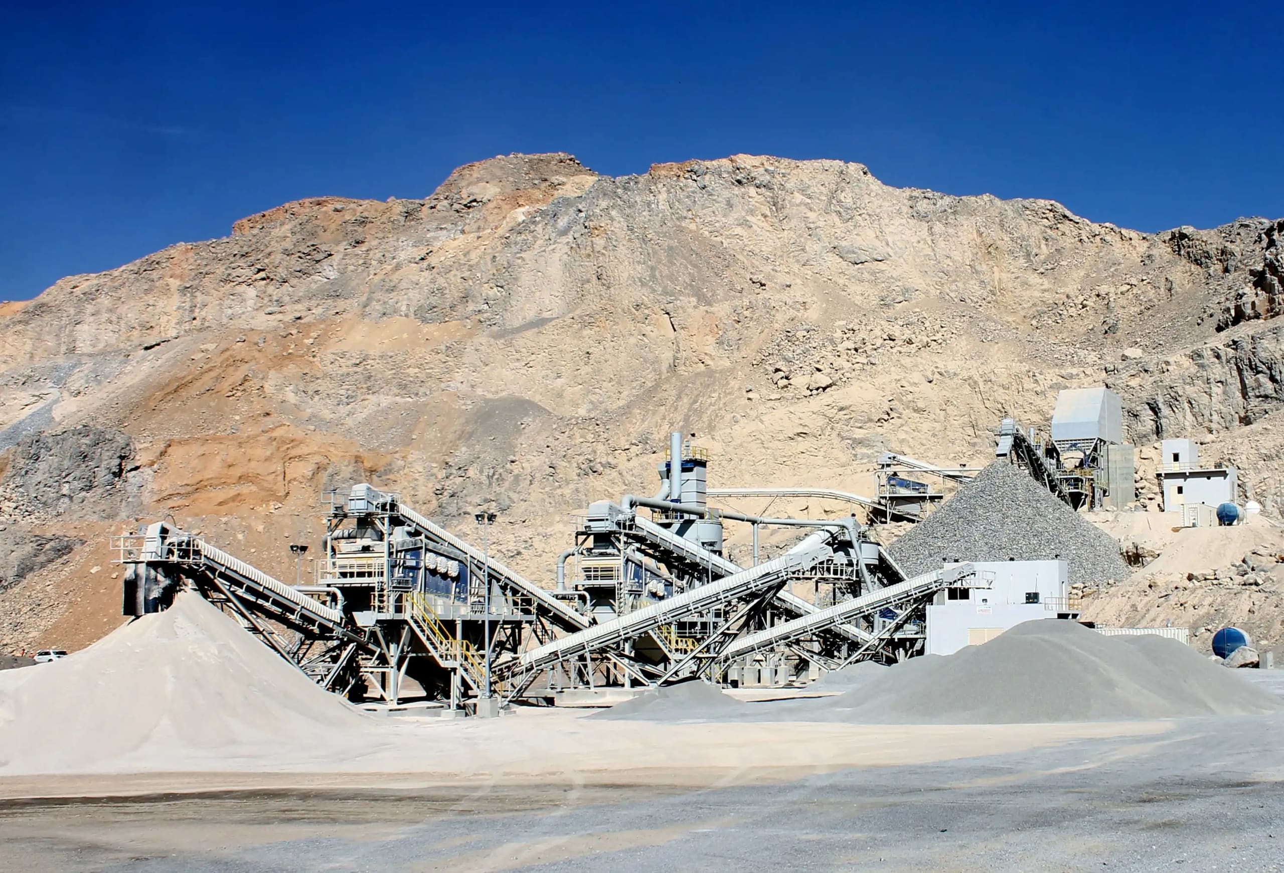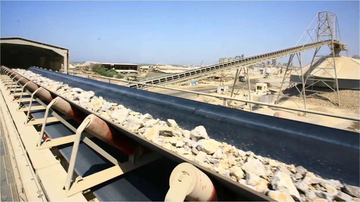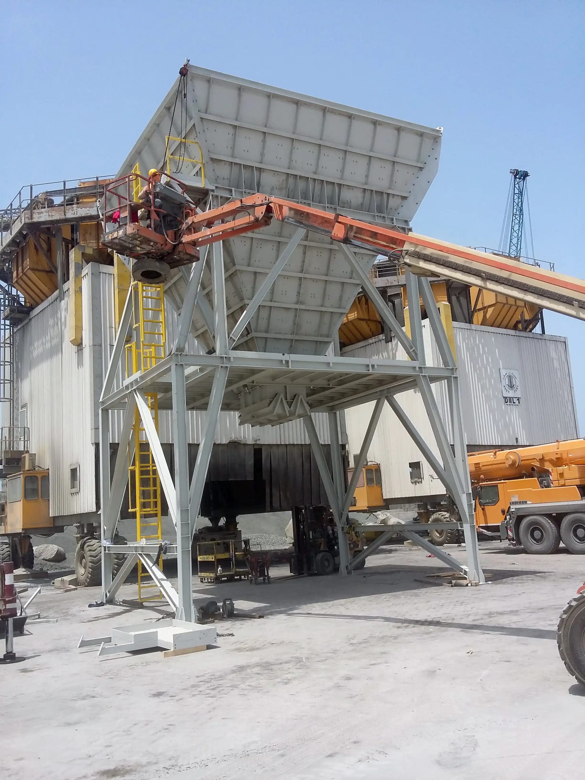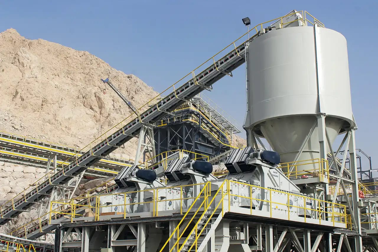 Description: Crushing & Screening plant Designed by QM for feed of 3500 t/h limestone 0-400mm to produce 2800 t/h of 0-5/5-10/10-20/20-32mm. Existing of 2 Grizzly screens, 11 screens, chute work, silos, 6 KLEEMANN impact crushers and about 60 conveyors with STIEBEL GearMotors. Steel Structure, chute work and Conveyors been engineered , manufactured and installed by QM.