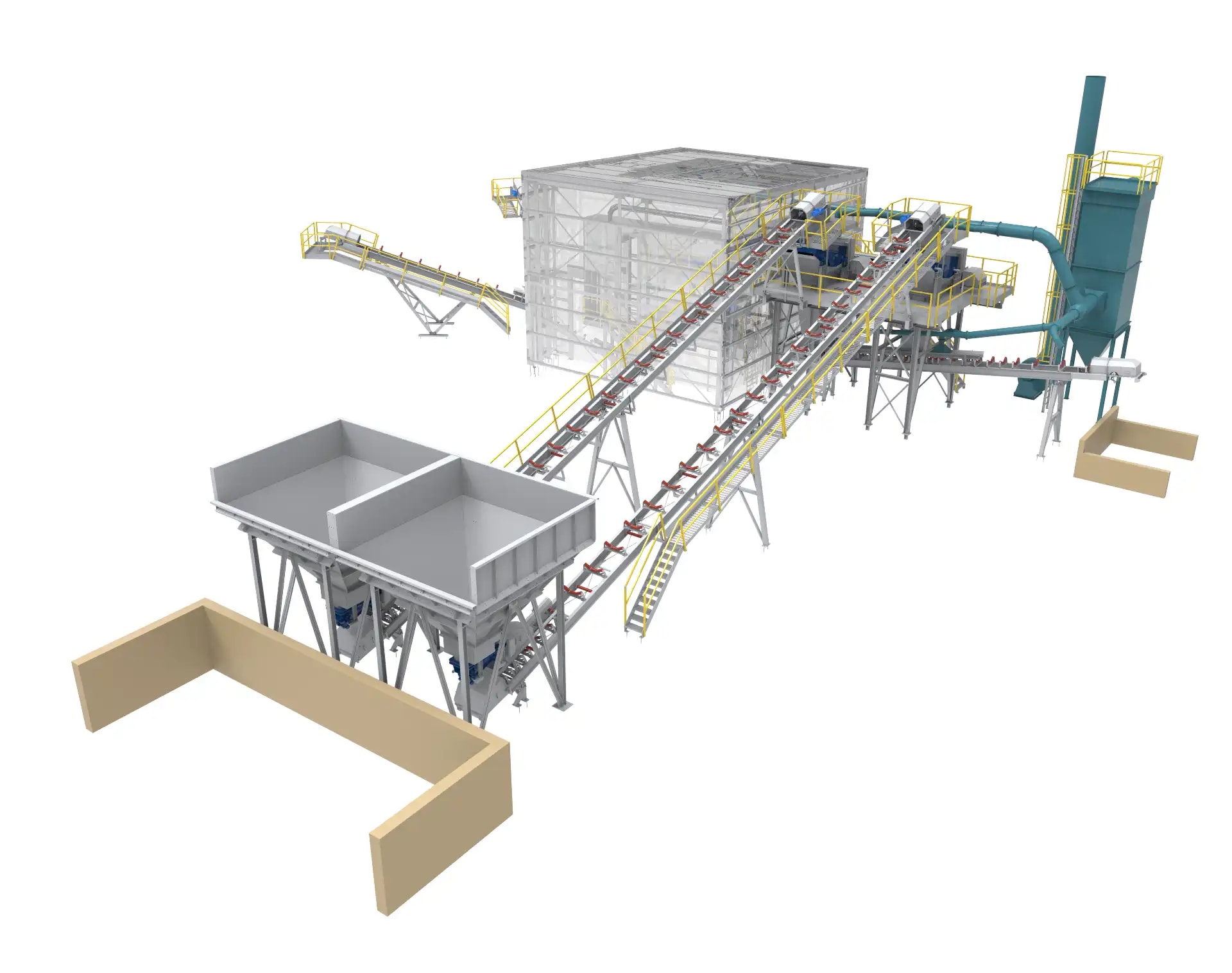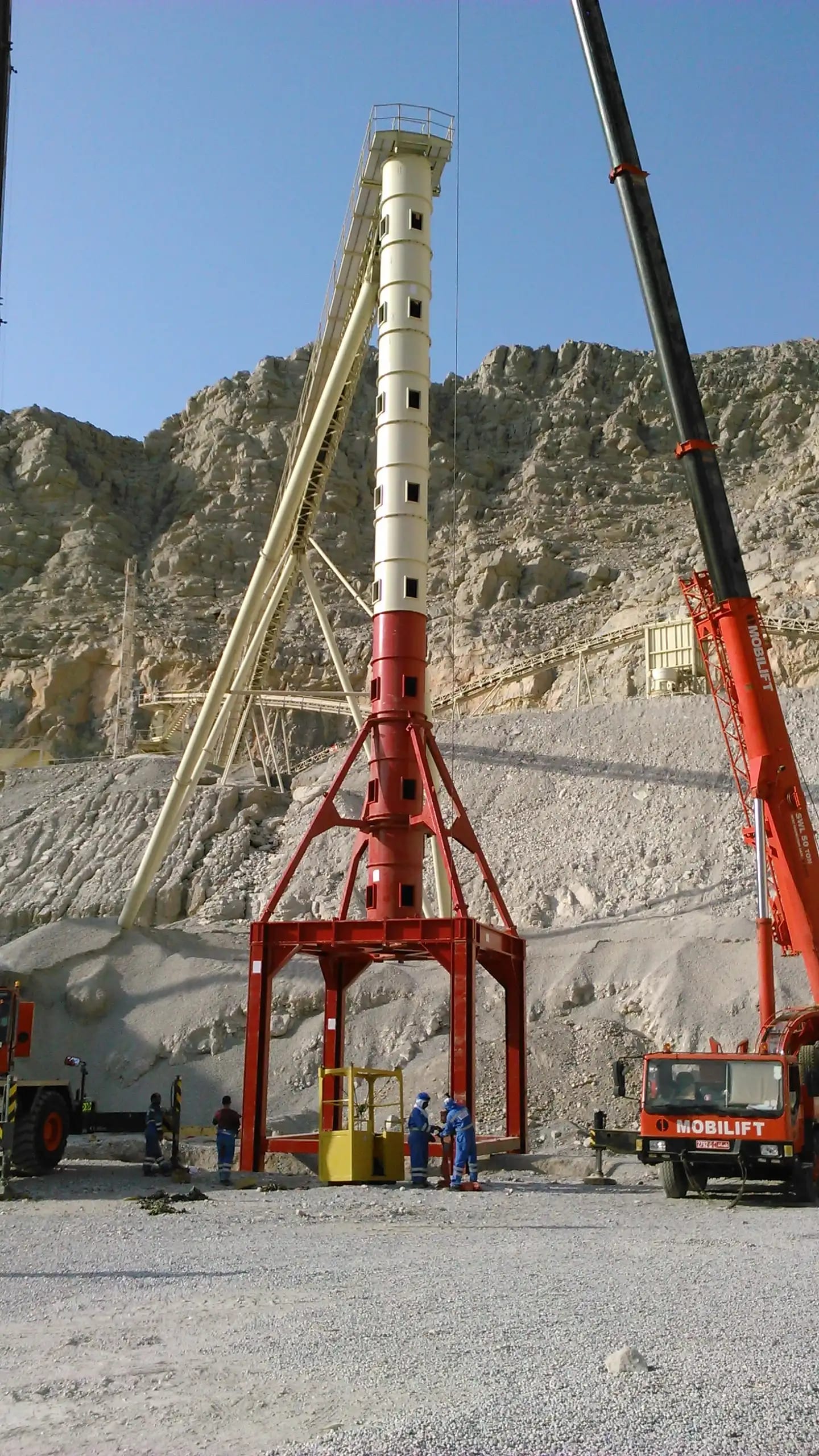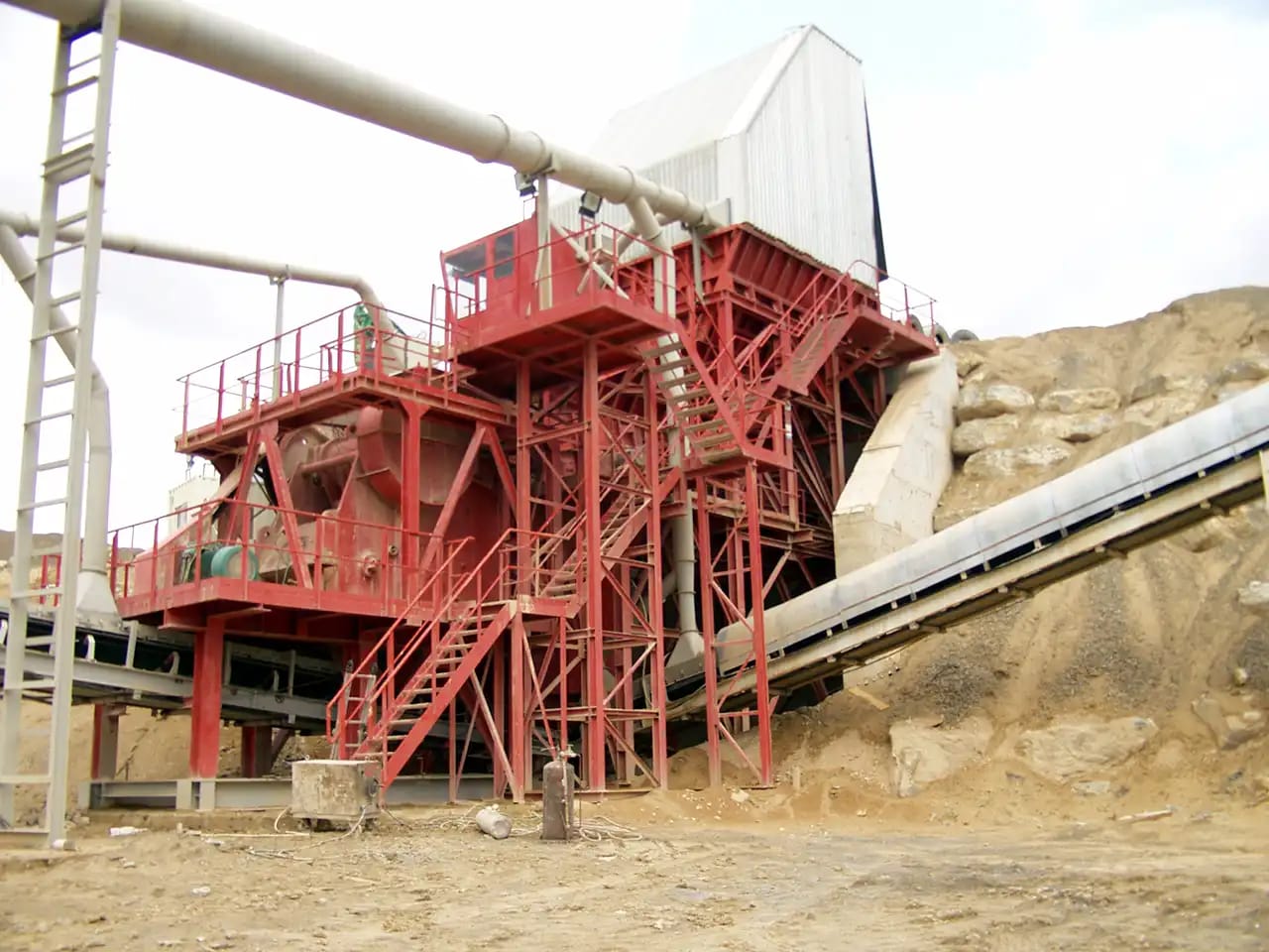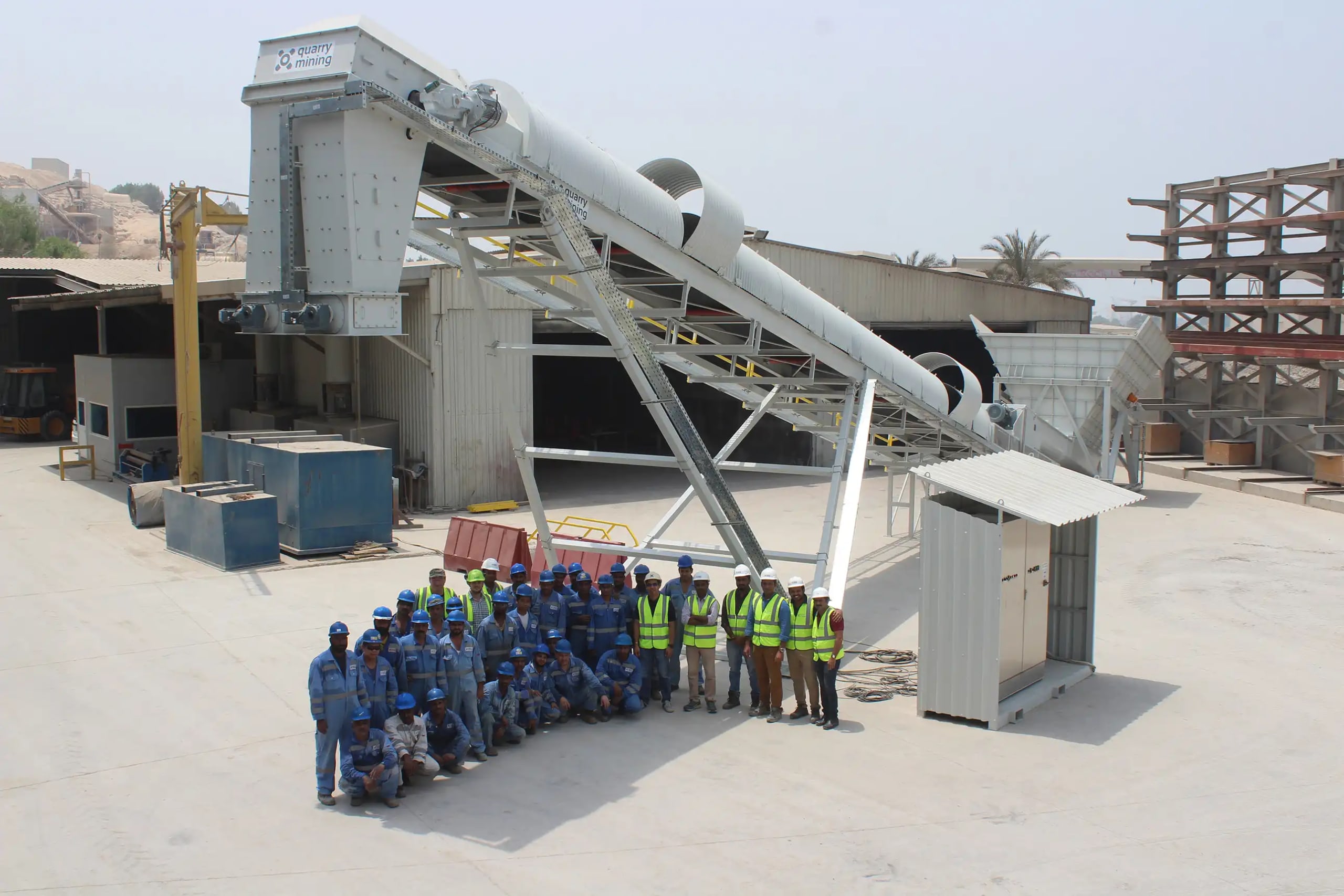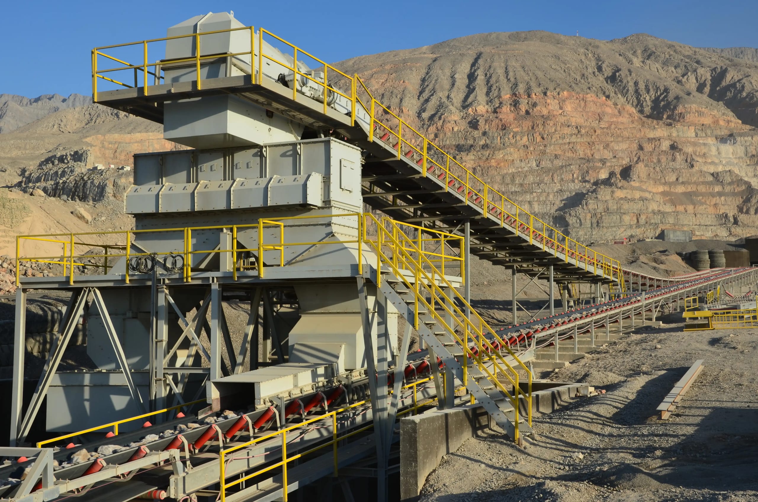 Description: Crushing & Screening plant Designed by QM for feed of 3500 t/h limestone 0-400mm to produce 2800 t/h of 0-5/5-10/10-20/20-32mm. Existing of 2 Grizzly screens, 11 screens, chute work, silos, 6 KLEEMANN impact crushers and about 60 conveyors with STIEBEL GearMotors. Steel Structure, chute work and Conveyors been engineered , manufactured and installed by QM.